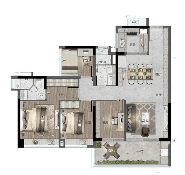 验证.解答项目规划、购房政策等问题)内容性质:本文为消息分享,建面约125㎡五房两厅两卫是多代同堂家庭的抱负之选,